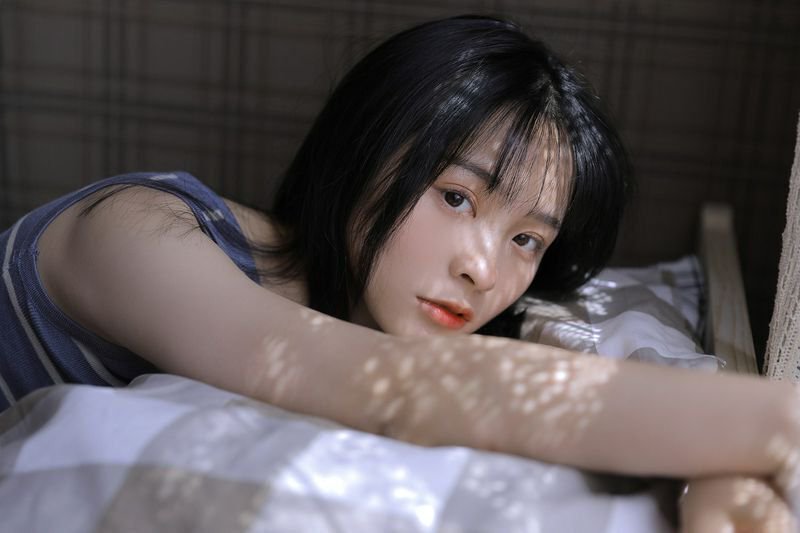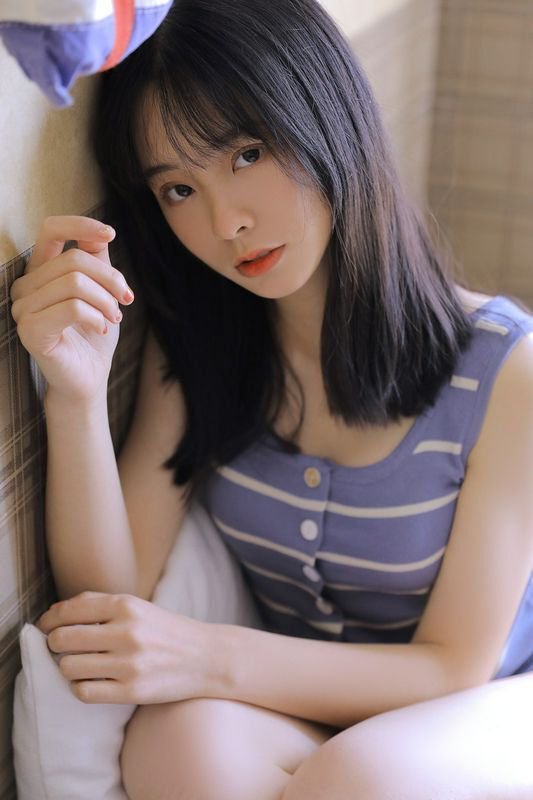 条纹背心美女性感美腿诱惑写真